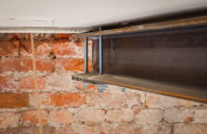 Två av våningsplanen har gjutna bjälklag med bärande balkar. Efter att man har satt in avväxlingar med nya balkar från Bromma Stål har hål tagits upp för att göra plats för hiss och trapp. Anders berättar: