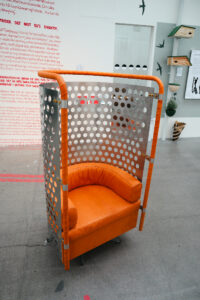 – Ja, jag har gömt tre små mässingsmuttrar inne i stolen – en subtil referens till 3-3-3-metoden, som används för att dämpa ångest: att uppmärksamma tre saker man ser, hör och känner. Det är som en liten påminnelse om att det går att återta kontrollen, om än bara för några sekunder.